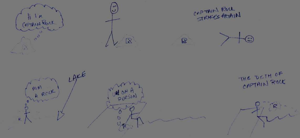Cartoon by Jennifer "Captain Rock. Created during Art with Andrew on Sunday